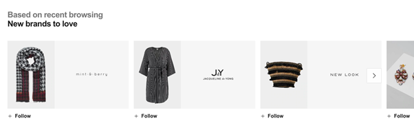 Anstatt nur ähnliche Produkte zu empfehlen, schlagen sie mir neue Marken vor, die ich auf Basis meiner letzten Browsing-Aktivitäten erkunden kann.
