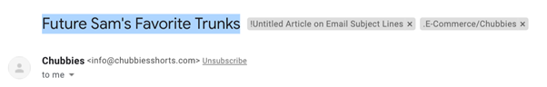 Und hier sehen Sie, wie Chubbies Personalisierung erfolgreich und selbstbewusst einsetzt: