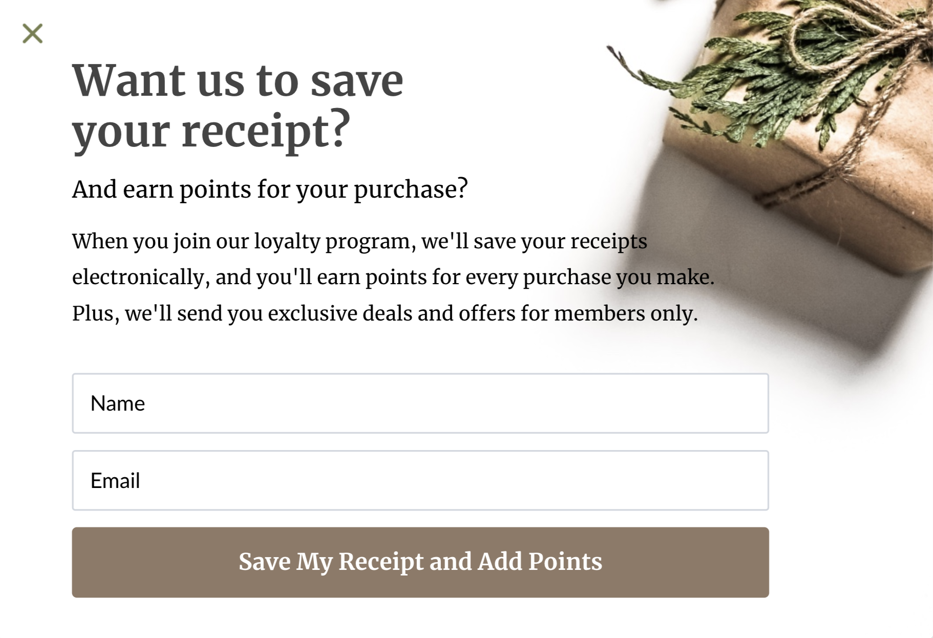 Nach einer Transaktion ist ein perfekter Zeitpunkt, um Ihr Treueprogramm zu bewerben. Sie können die Aufregung einfangen und Kunden für den Kauf bei Ihnen schätzen.