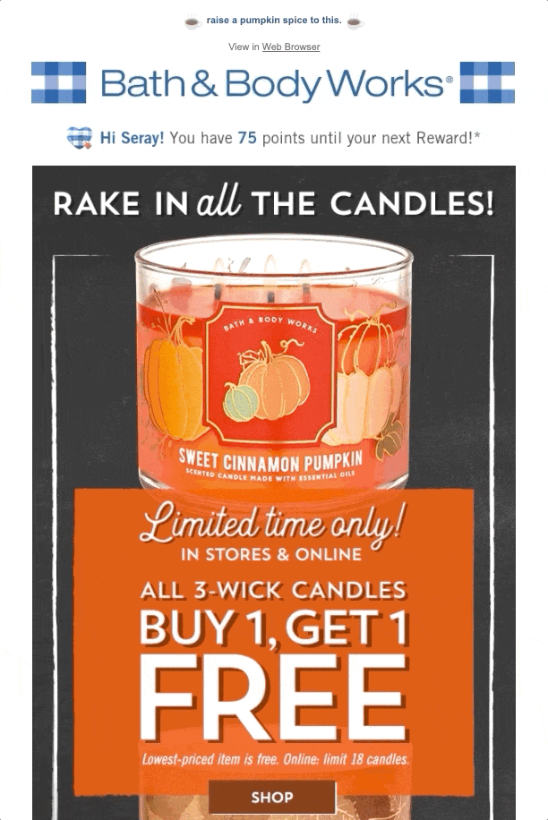 Bath & Body Works could easily write âBut 1, Get 1 Freeâ in this emailâs subject field, but they cleverly chose to make it relevant for this season.
