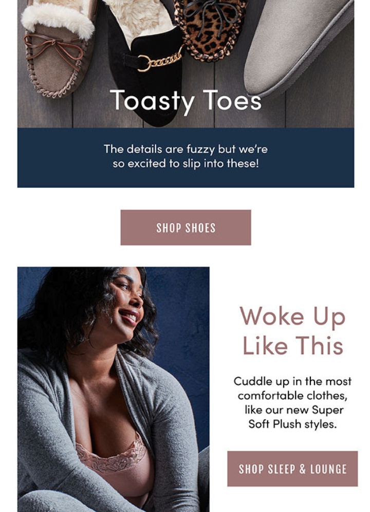 In the email, Torrid promotes its seasonally-relevant products thatâll keep you warm and cozy: