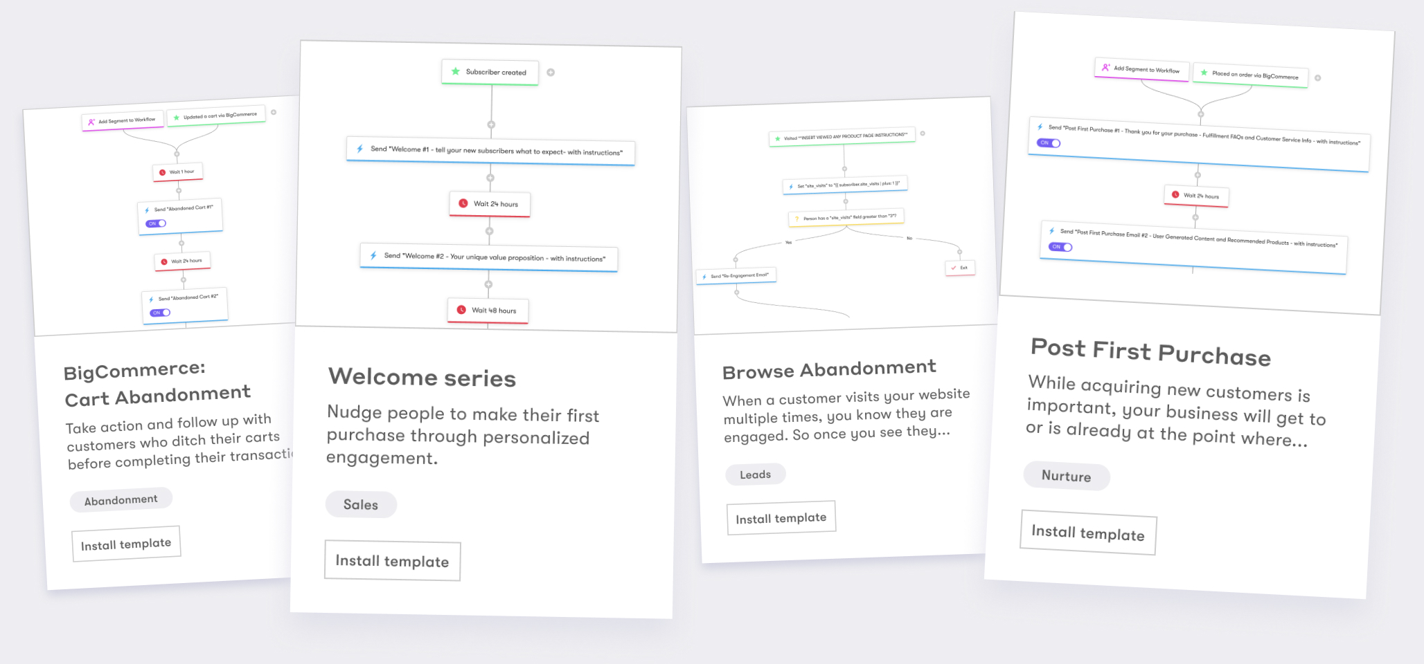 Yes! We have 20+ best-practice ecommerce workflow templates for welcome series, abandoned cart, abandoned browse, post-purchase, win-back, and more.