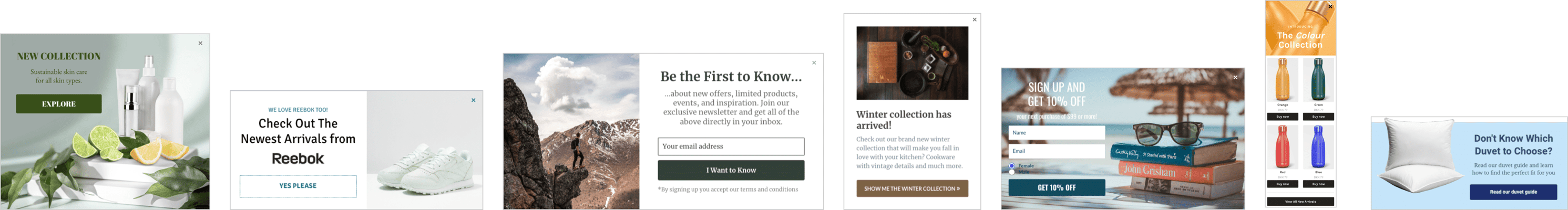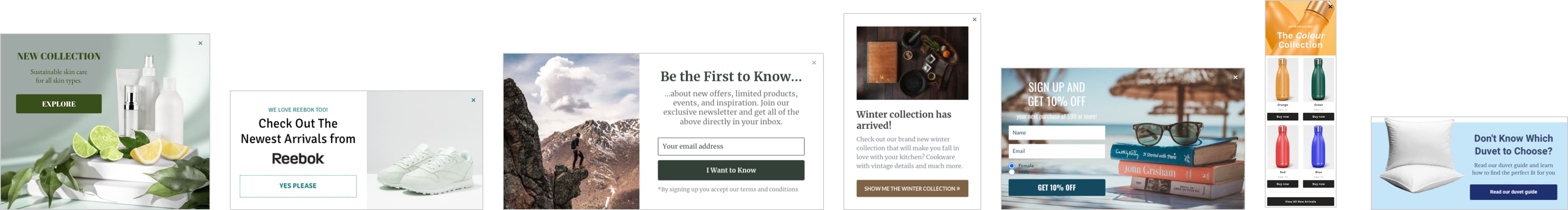 Onsite pop-ups are your one-stop shop to engaging visitors with: