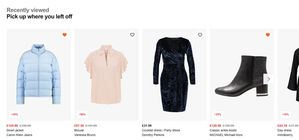 Com uma forte chamada-para-ação, “Continue de onde você parou”, a empresa me lembrou dos objetos de minha última visita e me convidou a reconsiderá-los de uma forma mais sutil.